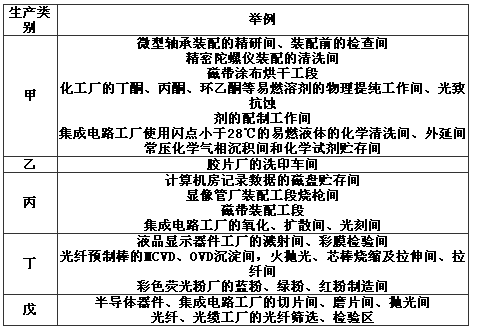 表B 潔凈廠房生產(chǎn)工作間的火災(zāi)危險(xiǎn)性分類舉例: