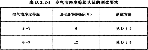 D.2.2 空氣潔凈度等級、靜壓差、風速或風量的認證測試的最長時間間隔應(yīng)符合表D.2.2—1和表D.2.2—2的規(guī)定。